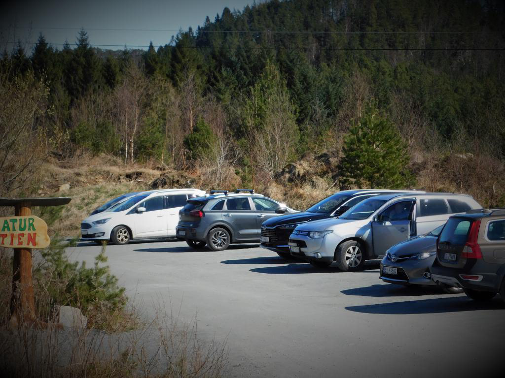 NB: Parker på tvers av vegretningen, slik bildet viser, ikkje på langs! På fine dagar er det nemleg gjerne bruk for alle plassane.