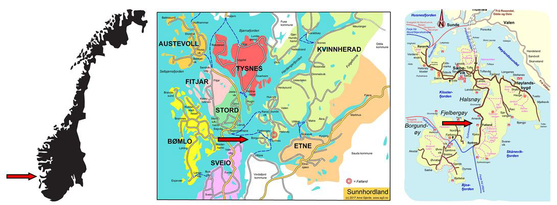 Frå Husnes køyrer du gjennom Halsnøytunnellen. I rundkøyringa på Tofte tek du rett fram, mot Sydnes. I neste kryss tek du til høgre, mot Sydnes. Så køyrer du om lag 6 km, til Fatland. Det er to kilometer før ferjekaien på Sydnes.